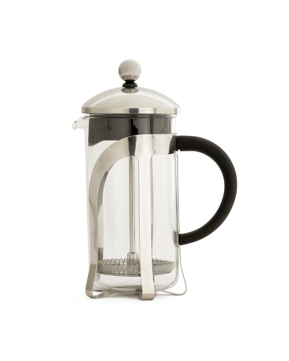 Caffeine o'clock. Wake up and smell the coffee with our contemporary 3 cup cafetiere. Just the right size to keep you chirpy all morning. Curvaceous in chrome and glass with a smooth black handle, it serves up an industrial look that's bang on trend. Made of tough, heat-resistant borosilicate glass, this French press keeps your coffee hot while staying safe to touch. Use the handy scale line to brew exactly the way you like it. Easy to clean, just remove the plunger and pop it all in the dishwasher. Buzzing.