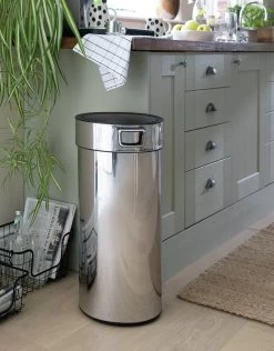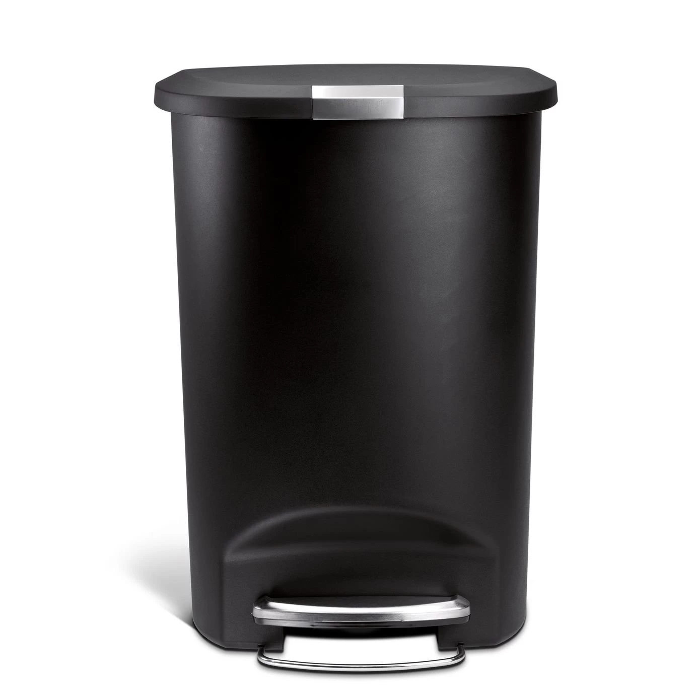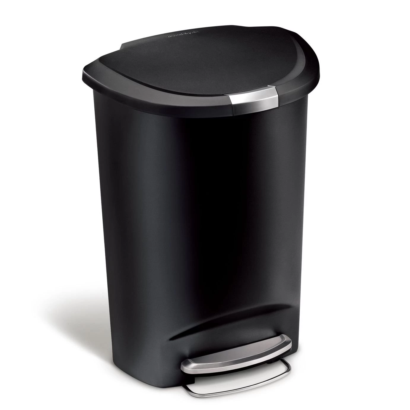 The simplehuman semi-round plastic pedal bin has a flat back for easy placement against the wall and out of the way. Its large capacity also makes it an ideal choice for busy areas around the home. It has a strong steel pedal that is designed to last, and our patented lid shox technology ensures a smooth, silent close every time. A slide lock helps keep rubbish in and pets and curious children out. simplehuman code P liners are designed to fit this bin perfectly, extra-thick plastic and double-seam construction prevent rips and tears.